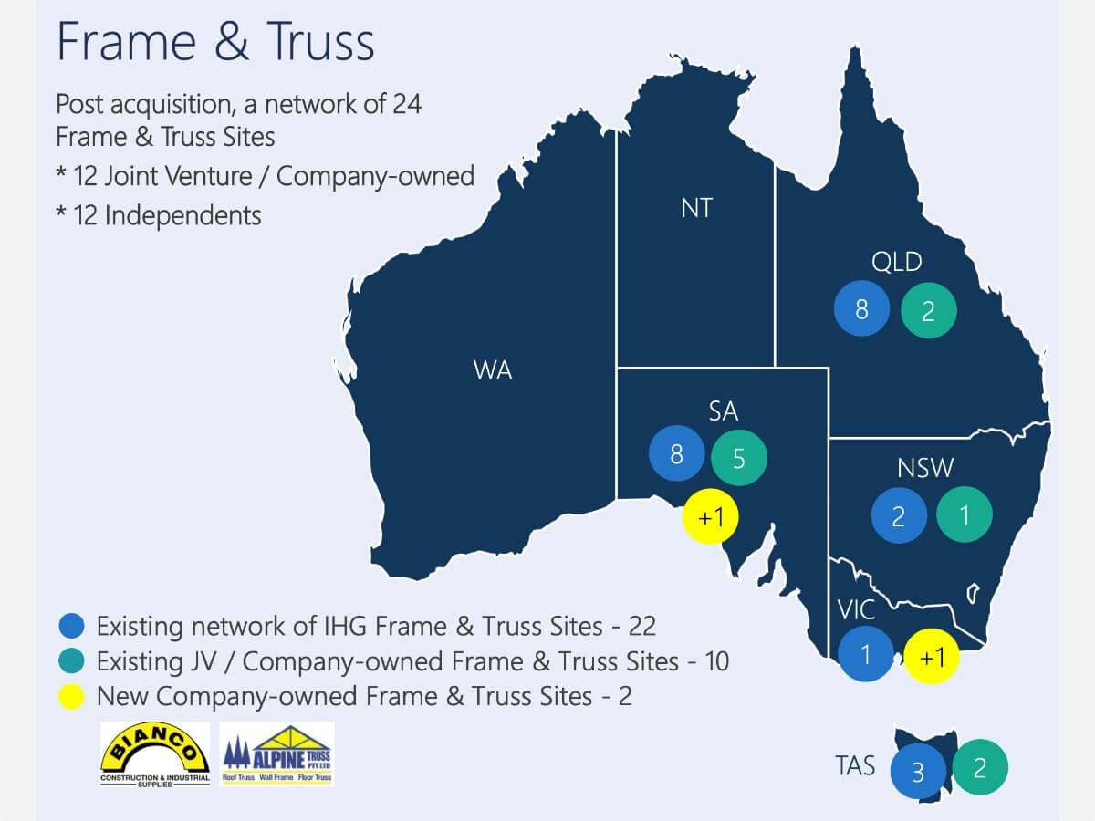 In response to a question from analyst Tom Kierath of Barrenjoey, Mr Jones went into some further detail regarding the hardware acquisitions of Alpine Truss and Bianco Construction: